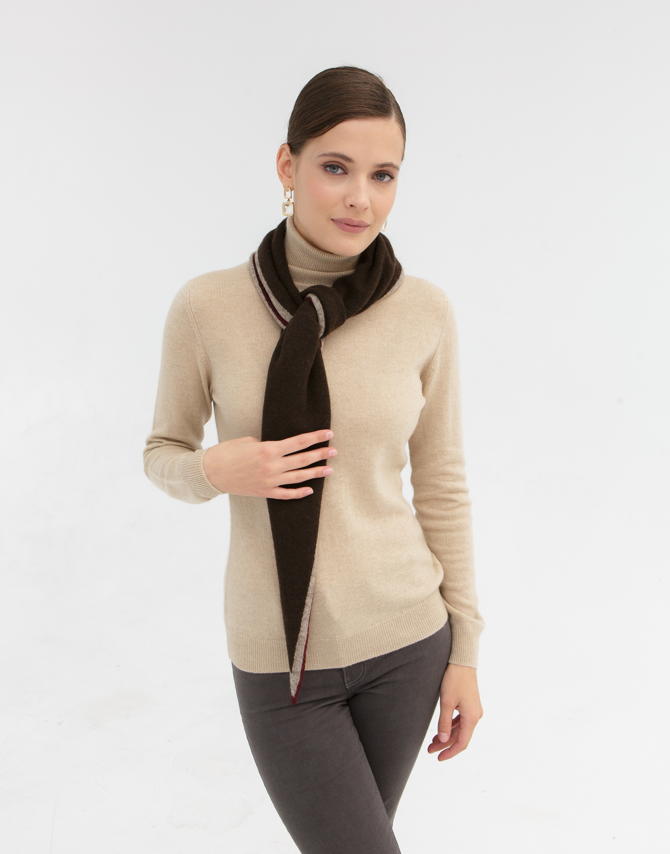 Легкий, мягкий и приятный к коже шарф обеспечивает тепло и комфорт в прохладную погоду. Компактная форма позволяет носить его различными способами, создавая как повседневные, так и более элегантные образы.