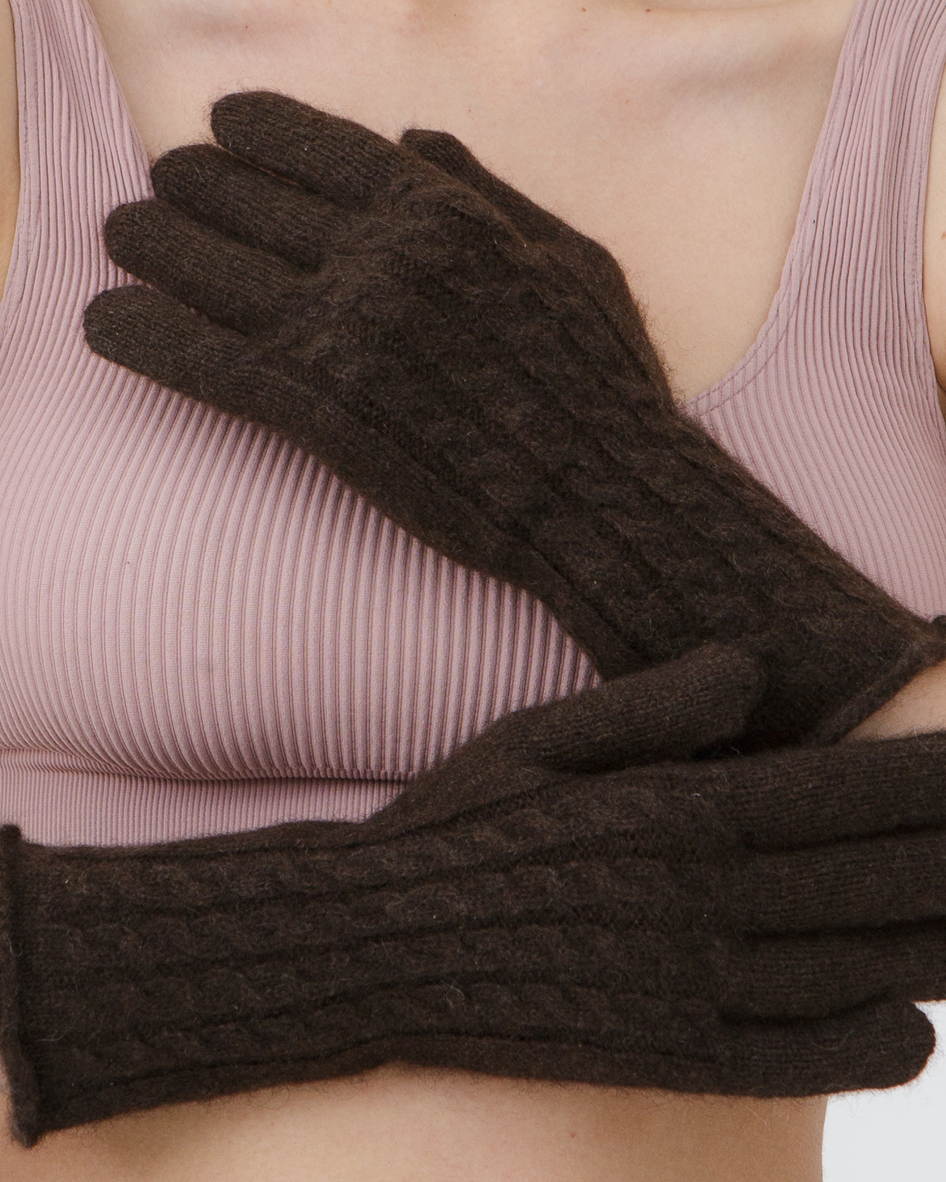 Перчатки из пуха яка 31124 темно-коричневые