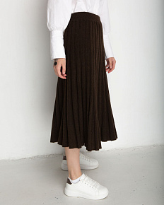 Плиссированная структура по всей длине придаёт юбке объём и изящную динамику при движении. Классическая длина миди делает модель универсальной.