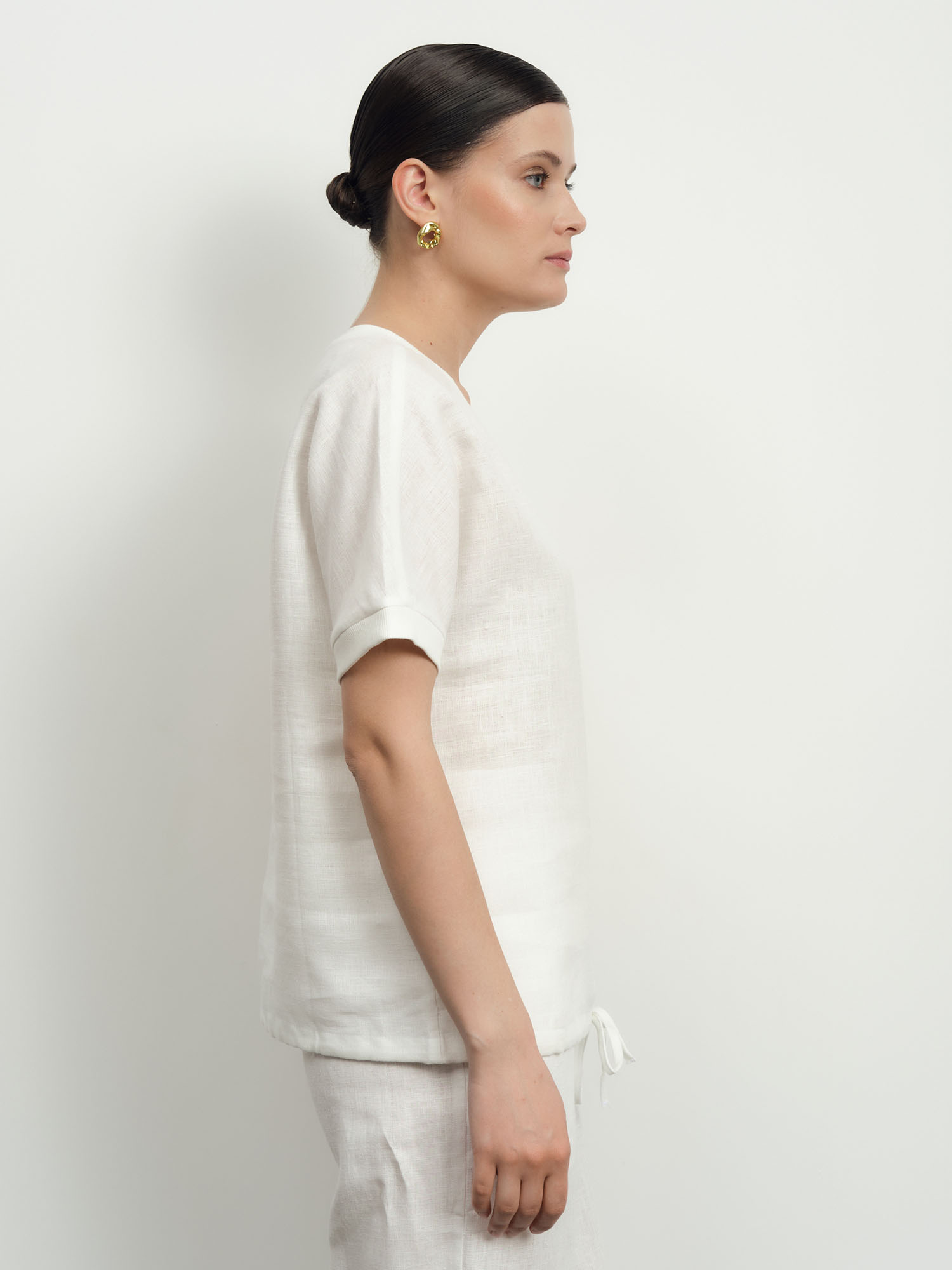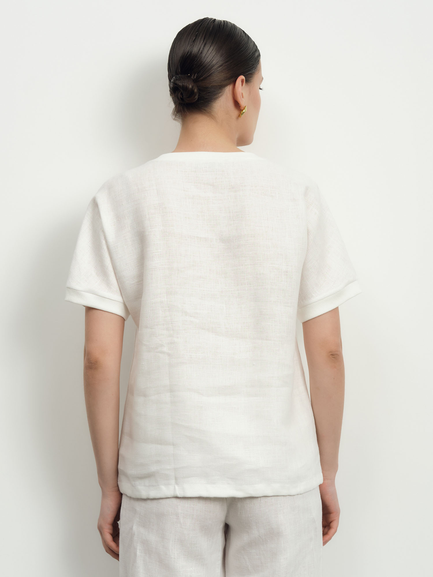Идеально сочетается с льняными брюками, юбками или шортами. Подходит для повседневных, офисных и летних образов.