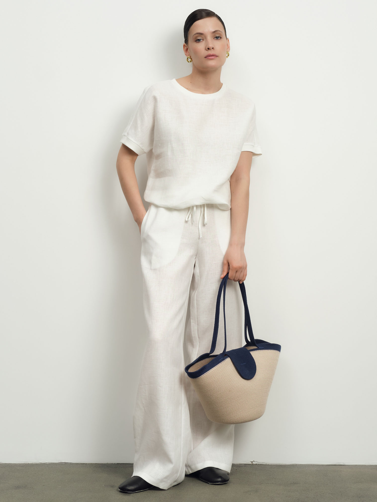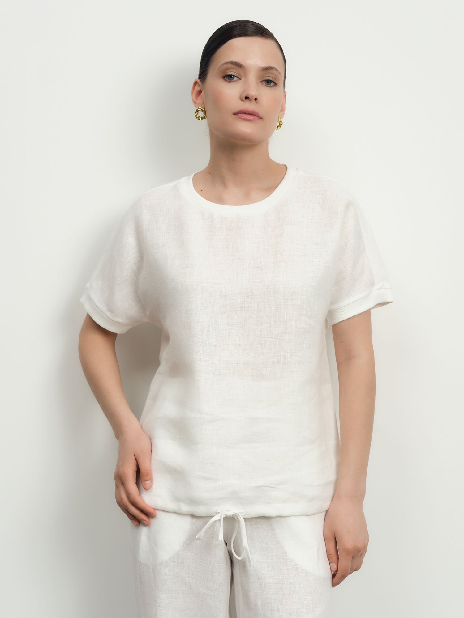 100% лен — натуральный, дышащий материал с легкой фактурой. Обеспечивает отличную воздухопроницаемость и комфорт в теплую погоду.